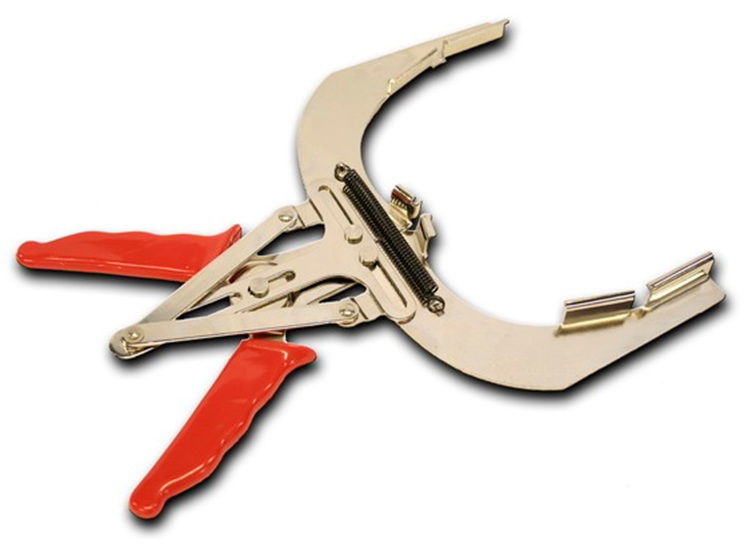 Dugattyúgyűrűk eltávolítására és felszerelésére alkalmas speciális fogó, műanyag markolattal.