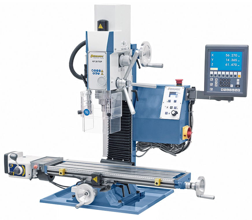- Fokozatmentes maróasztal-előretolással és 3-tengelyes digitális kijelzővel.