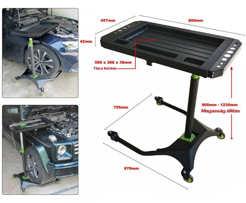 • Univerzálisan használható 3 az 1-ben szerviztálcás gurulós szerszámtároló kocsi.